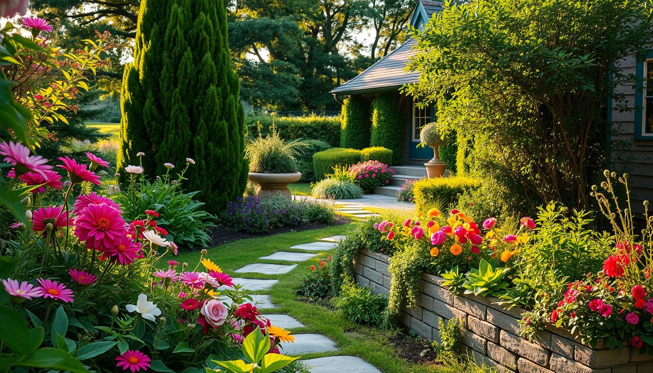 Seventy percent of homeowners believe a well-designed garden enhances a home’s garden aesthetics. To blend indoors and outdoors, focus on indoor-outdoor flow. Begin by matching your home’s home garden style in outdoor areas. Use materials like stone or wood that match your home’s look.