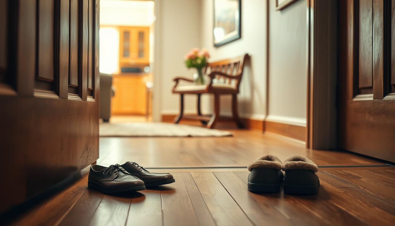 Removing shoes at the door is a way to move from stress to calm. It’s a comfort ritual that tells our brain it’s time to relax. Studies show it lowers cortisol levels, helping us feel safe at home.