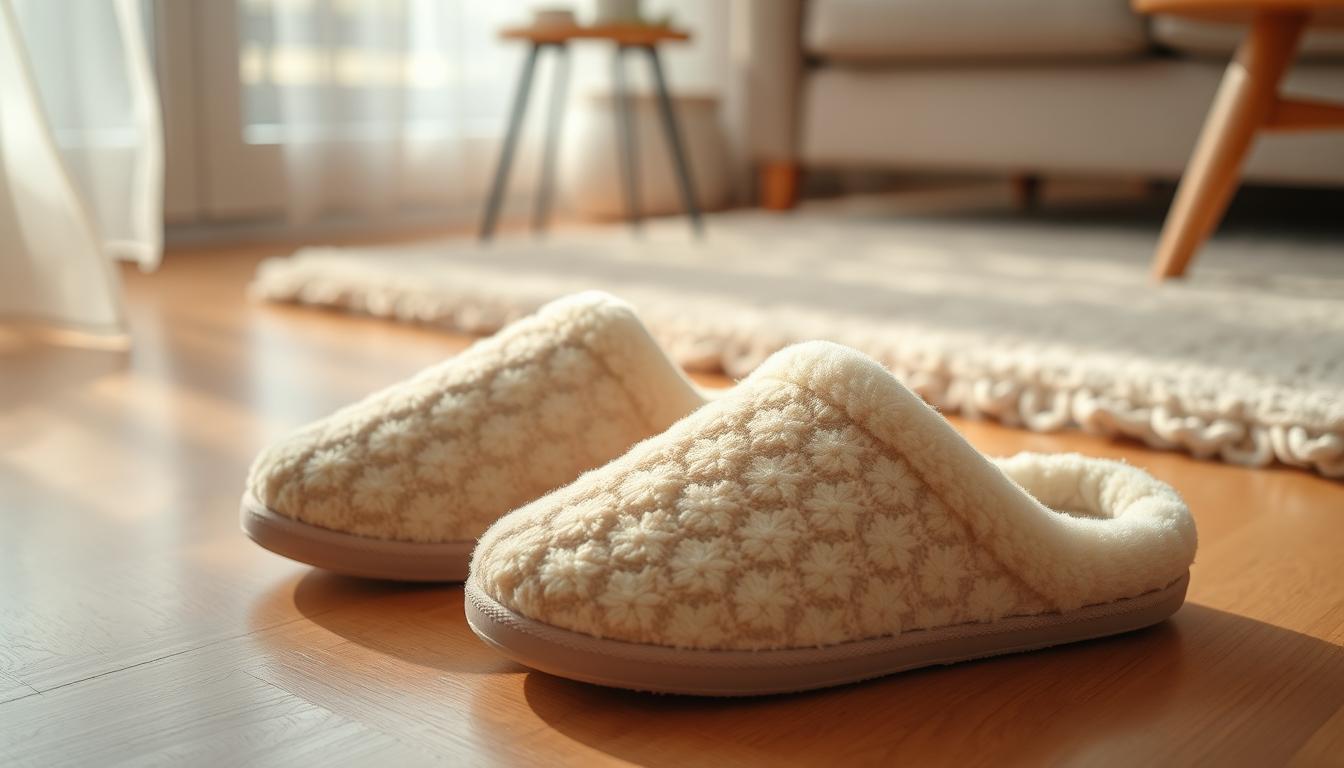 Starting a slipper routine is easy. It’s about making small, thoughtful choices. For example, wearing slippers when you come home or in the morning. These habits are not just about looks; they also keep your feet safe from hard floors.